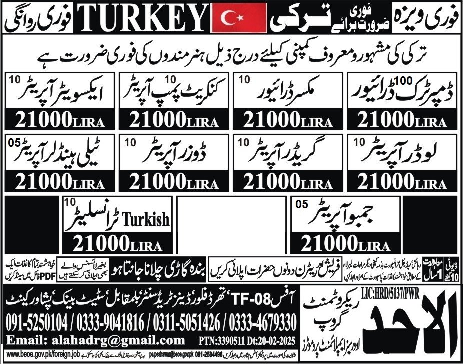 Urgently Hiring for Construction Groups In Turkey